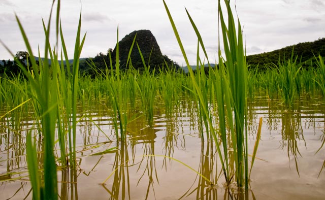 While the tiny town itself had little to see, the highlight of Muang Ngoi is a trek along the trails where no motorized vehicles have gone. One morning, Liz headed out for the village of Ban Na, a 45-minute walk into the mountains. On the way she met a very outgoing, 20-year-old rice farmer named "Eh" (not sure how to write that in English, but this must be close).
